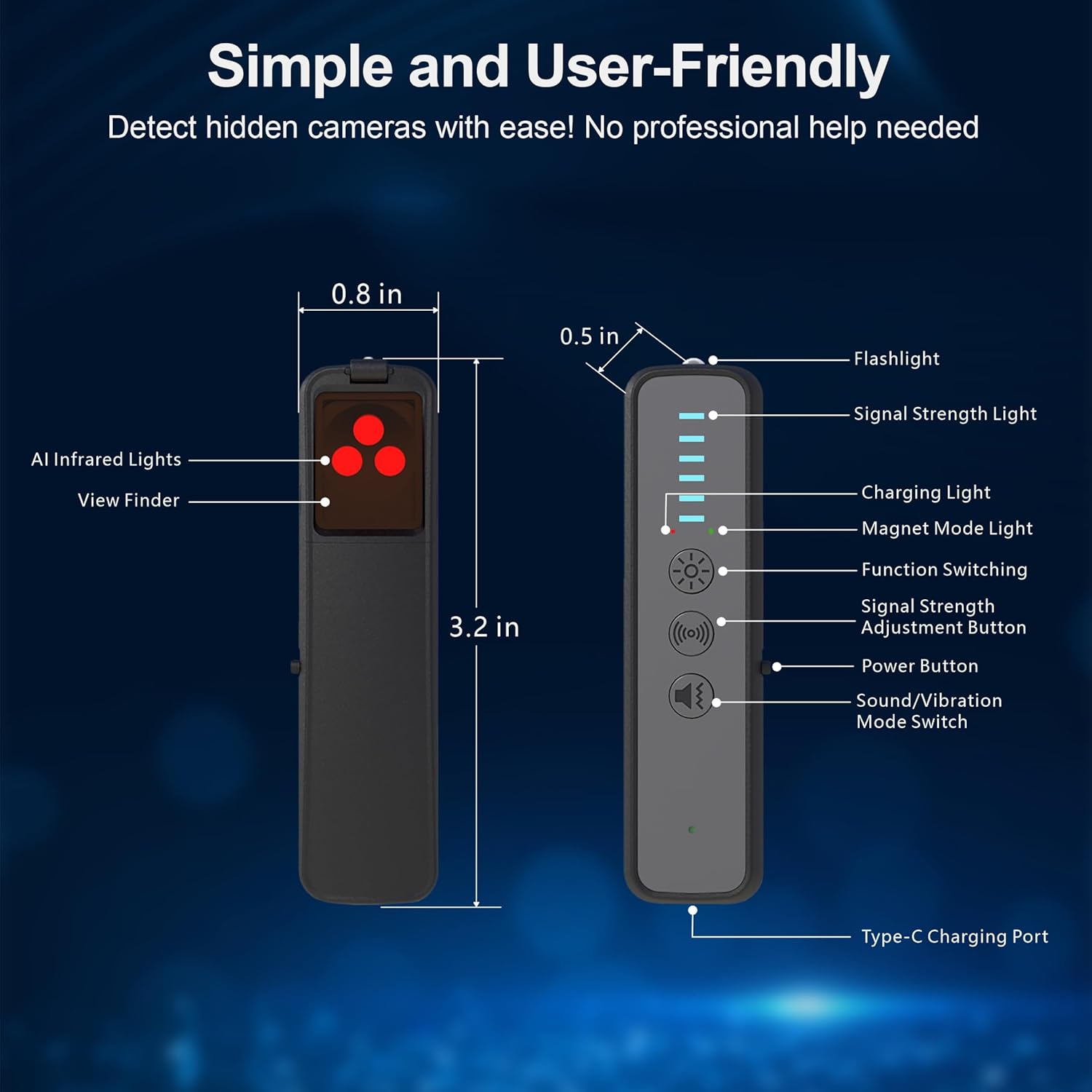 ZHENHAN Hidden Camera Detectors,GPS Tracker Detector,Camera Detector Spy Camera Finder,RF Detector,25H Working Time,Travel-Friendly Size(S600 Black)